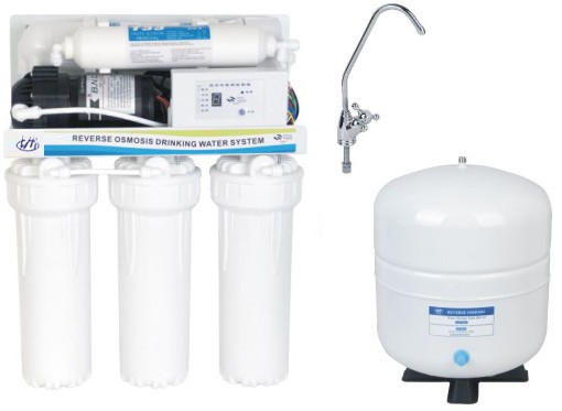 (1)、將進(jìn)水分成兩條水路,一路直接經(jīng)過超濾膜過濾后接到雙管龍頭上,出水可供家庭使用,包括洗菜、煲湯、煮飯,洗漱用水等:另一路則通過反滲透膜出水連接在雙管龍頭的另一根水管上,達(dá)到直飲標(biāo)準(zhǔn)。